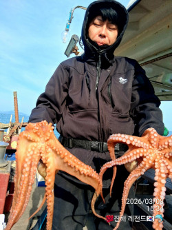 일요일 문어 다녀왔습니다.너울이 조금 있었지만 오랫만에 대물들 만나고 왔습니다.지난번 3키로 2킬 총 6키로 잡으신 조사님,어김없이 3키로 1.5키로 외 중치 포함..,5.5Kg!!!그외 1.3키로 두마리 포함 4Kg!!! 잡으신 조사님...잡으신분과 조과차가 조금 났습니다.이번주 기상 , 물때 다 좋습니다.3/12 목 : 도다리 예약가능( 5만)3/13 금 : 도다리 예약가능( 5만)3/14토 : 도다리 예약가능( 5만)3/15 일 : 돌문어 예약가능( 9만)기상 좋네요! ! ! 토요일 도다리 일요일 돌문어 가실분연락주세요...출항하실 조사님 연락주세요~미리 예약해주시면 감사하겠습니다^^ *** 진해 레전드호 예약 안내 ***예약문의 : 010-3902-0593오시는길 : 경남 창원시 진해구 명동 405 (공영주차장) 해양경찰 앞 방파제 중간홈페이지 : https://legendho.sunsang24.com/ *** 진해 레전드호 예약 안내 ***예약문의 : 010-3902